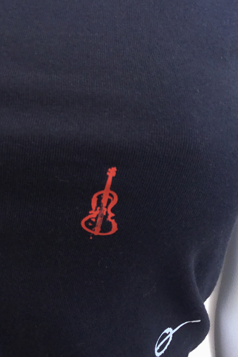 Damenshirt Instrumente, schwarz, Streichinstrumente