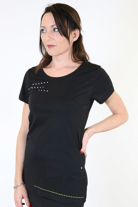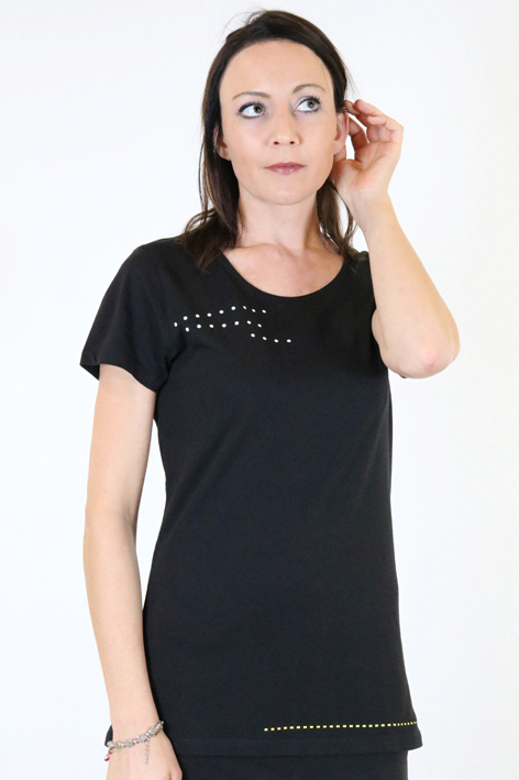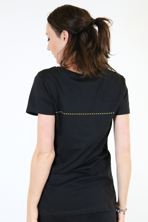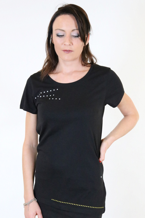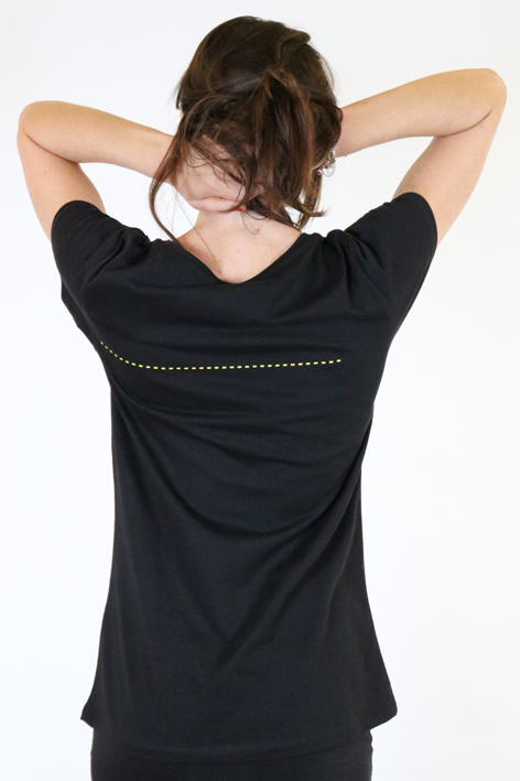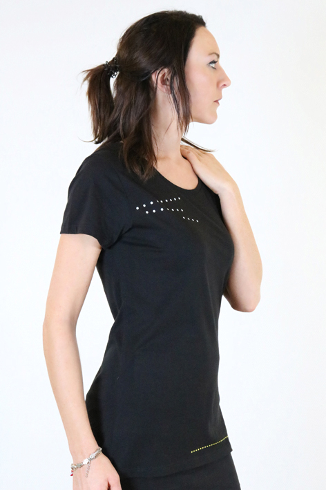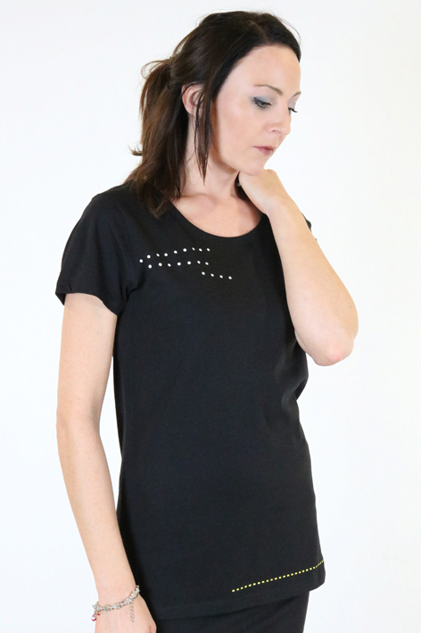 - schwarzen Shirt mit einem schönen etwas weiteren Ausschnitt und kurzen Ärmeln