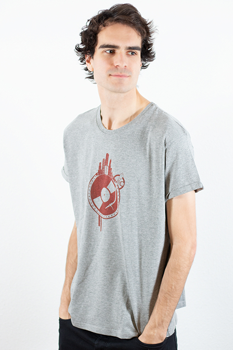 Mobile Preview: graues Männershirt mit Weltscheibe