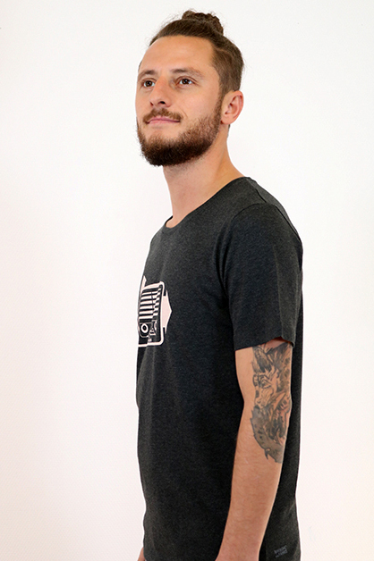 Hier haben wir eine ideales Kleidungsstück für alle Radiosammler und technikbegeisterten Radio-Fans. Wunderbar leichtes Shirt mit Radio-Motiv in hellblau auf der Vorderseite. Auf der Rückseite befindet sich unten seitlich unser Logo. Das Shirts ist mittels hochwertigem Handsiebdruck bedruckt. Ich verwende umweltfreundliche wasserbasierende Siebdruckfarbe. Der hochwertige blau melierte Stoff trägt sich sehr angenehm.