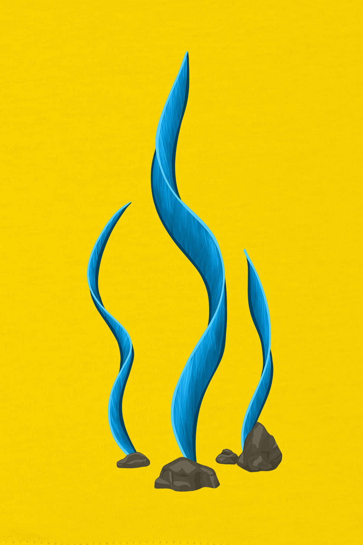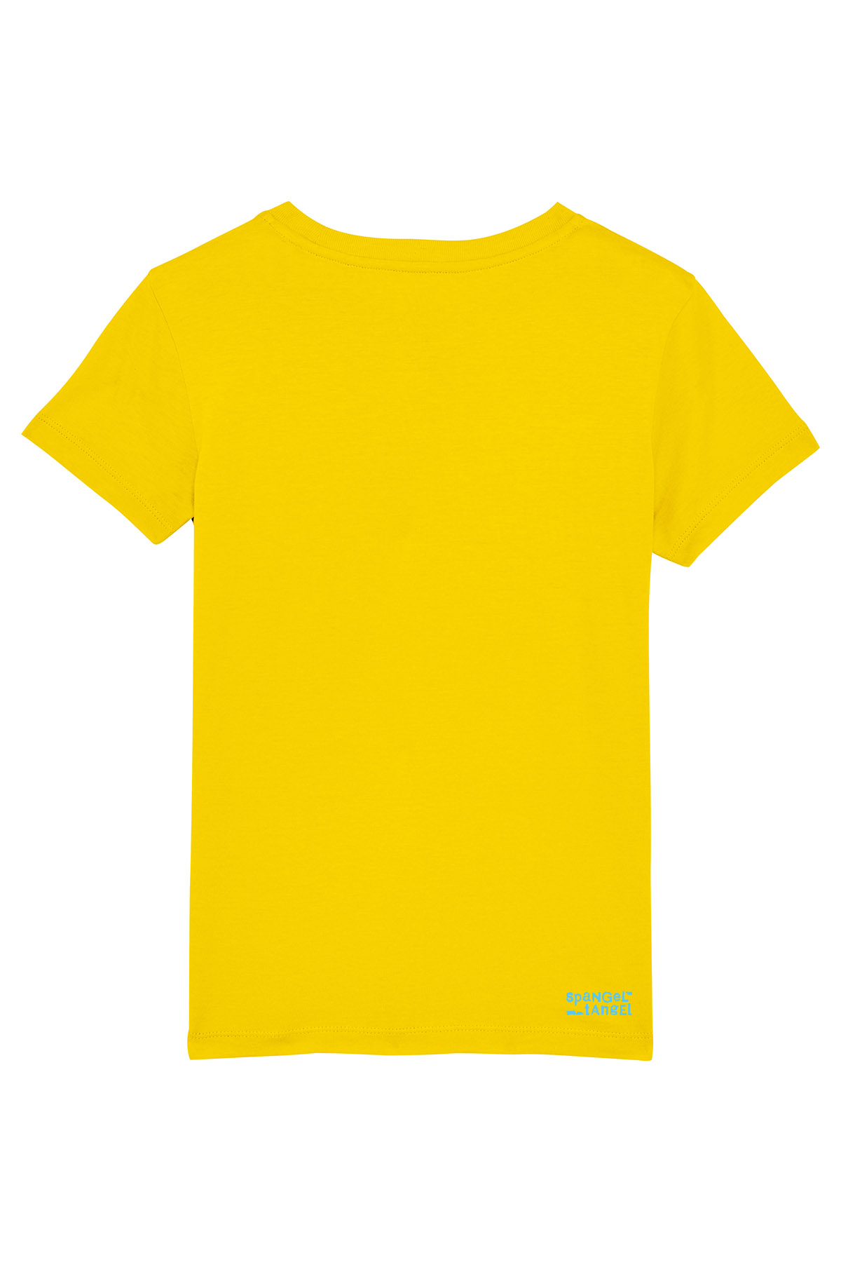 T-shirt für Kinder in gelb mit blauem Axolotl und Seegras