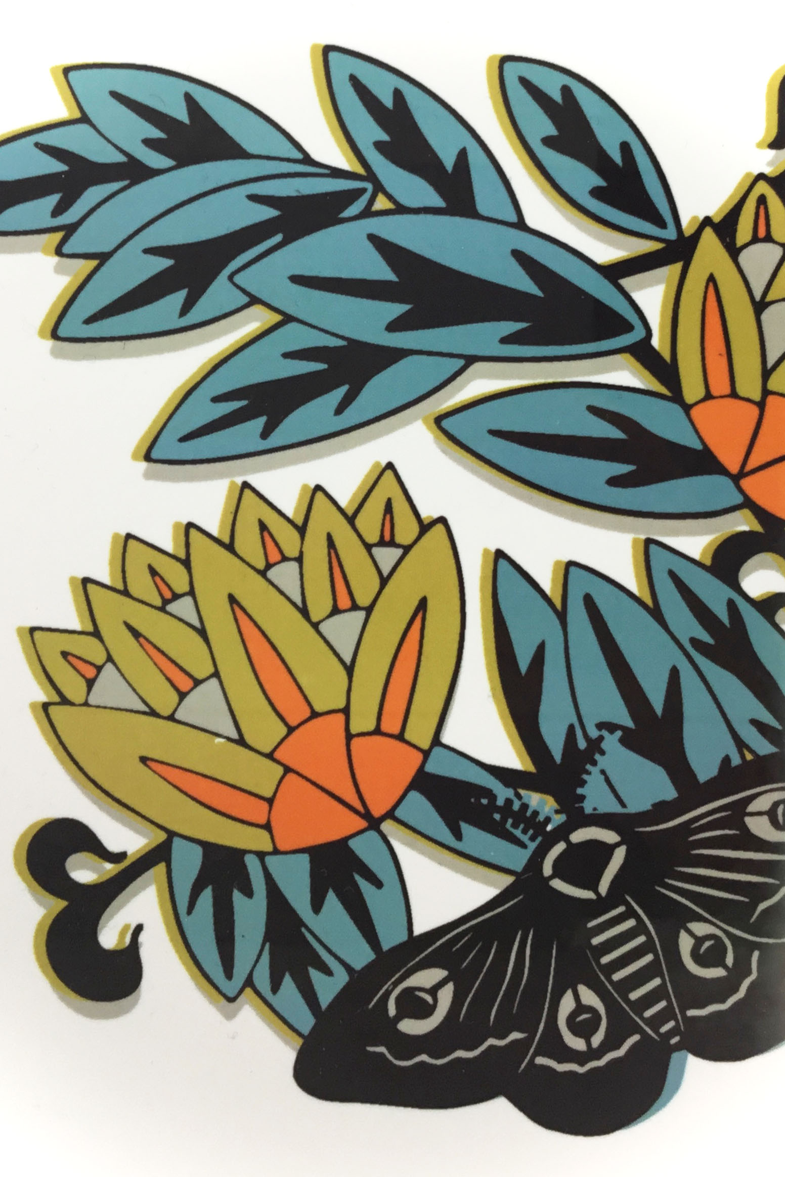 Druckfarbe: ocker, blau, orange, schwarz